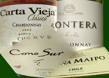 edulliset eteläafrikkalaiset. Kun Etelä-Afrikassa yleistyvät kansainväliset ja etenkin tummat lajikkeet, vähenee vaaleiden volyymilajikkeiden ylitarjonnan tuoma hintakilpailuetu. Heikko Chilen peso on pitänyt viinien hinnat erittäin kilpailukykyisinä pari viimeistä vuotta. Chileläiset Chardonnay-viinit edustavat yhä selvemmin keskivertokuluttajan käsitystä ”hyvästä” valkoviinistä. Ainakin ne tarkoitettu mahdollisimman nuorena ja lämpimän ilmaston tuoma pyöreys korostuu, etenkin kun chileläisten viinien perustyyliä on yleensä kohtuuhappoista. Artikkelissa keskitytään muihin kuin laadun kannalta ongelmallisiin Sauvignon Blanc –viineihin. Poikkeuksena sääntöön ovat kuitenkin listan kaksi laadukkainta viiniä: makea (Echeverria) ja kuiva (Errazuriz) SB-viini.